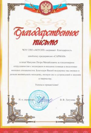 Швейное предприятие «Сарман» в г. Армавире. Ассортимент, оригинальность, качество.