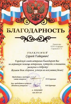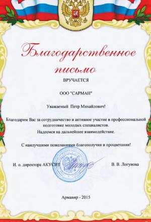 Сертификаты и благодарственные письма